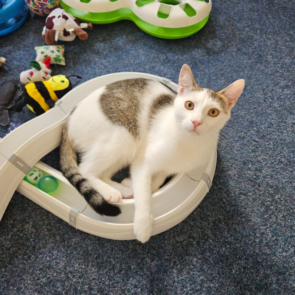 Hrášek byl nalezen ve Žďáru nad Sázavou opuštěný venku, na parkovišti, kde strávil kromě chladného dne i mrazivou noc. Zachránila ho až hodná paní, která ho následně předala do naší péče. Hrášek je kotěcí úžasňák, k lidem umazlený, přátelský, zkrátka skvělý. S kočičími kamarády si většinou rozumí a proto by nějakého rád měl i doma na společné zlobení, pokud by měl jít sám tak jen k někomu kdo tráví většinu času doma a nebude trávit půl života o samotě. Hrášek ocení domov, kde bude mít pro sebe spoustu lásky a pozornosti, vracet vám to bude stejnou měrou, to on umí, v mazlení a pusinkování je přeborník. Určitě potřebuje kočičí zázemí odpovídající potřebám kotěte, škrabadla, hračky, aj. aby se mohl vydovádět a užívat si kotěcího života se vší parádou. Domov hledá výhradně v bytových podmínkách, zasíťovaná okna/balkon nutností.