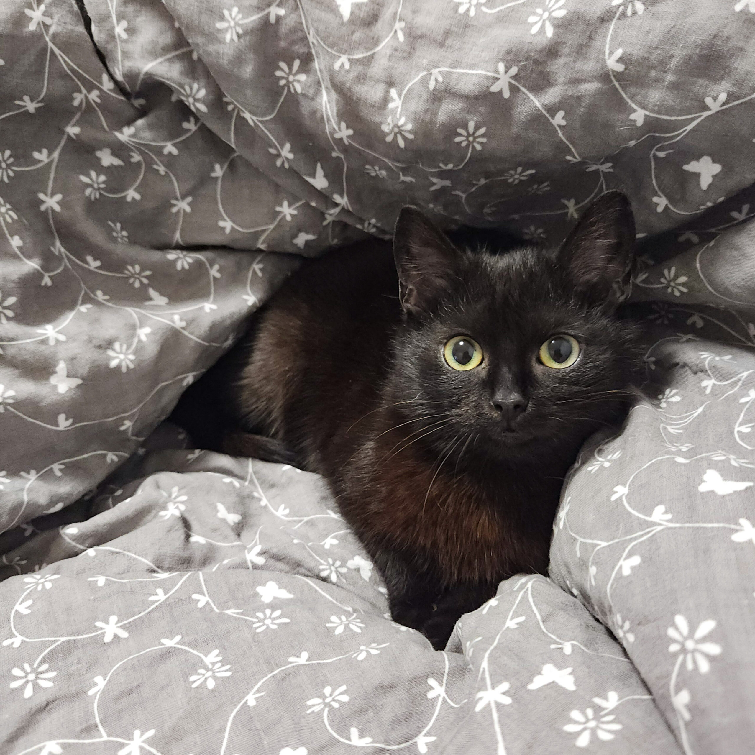 Majkyho jsme přijali z obce Braníškov, kam jsme vyrazili do jedné lokality na žádost kastrovat v rámci našeho kastračního programu. Byl odchycen ve velmi špatném stavu. Jako půlroční kocourek vážil sotva kilo, byl úplný drobínek, člověk by mu hádal sotva polovinu skutečného věku, extrémně podvyživený, vyhladovělý, dehydratovaný, průjmy z něj samovolně tekly proudem. Bojoval z posledních sil o život. Nyní je na tom již mnohem lépe, ale stále řešíme nějaké zdravotní potíže, tedy je ještě v léčbě…
