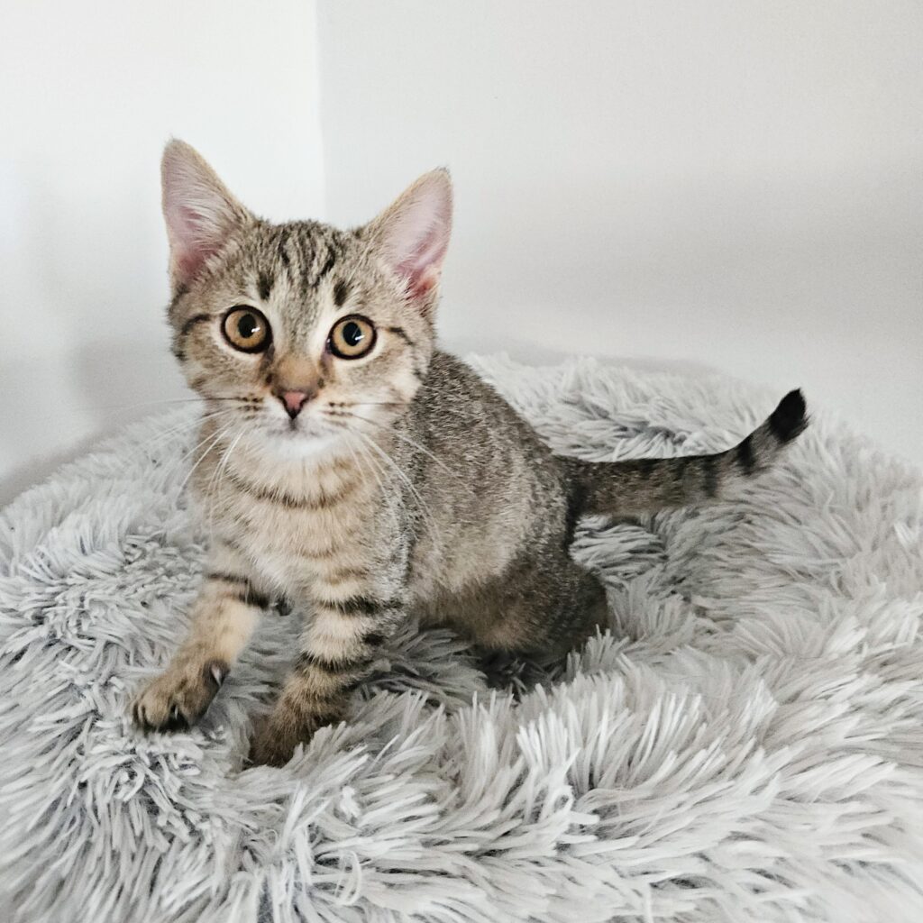 Minie jsme k nám přijali z jedné lokality v Jihlavě, kde žila v žalostných podmínkách, kde nechyběl hlad, špína, zima, týrání, a vše zlé co si člověk ani neumí představit. Při přijetí byla naprosto vyděšená, plakala strachy, hladem, bolestí. Na tělíčku měla na několika místech silně slepenou srst zřejmě voskem, v důsledku toho pod tím zánětlivá ložiska na kůži. Na některých místech měla i ohořelé chloupky. Co s ní v místě hrůzy dělali, ani nechceme domýšlet. Minie u nás pomalu rozkvétá a je to báječná kočičí princezna. Umazlená, hravá, veselá, zkrátka správně kotěcí. Stále ji máme nablízku, má v sobě nekonečné množství lásky a vrnění, čímž vás bude zahrnovat jak jen to půjde. Povaha Minie je přátelská nejen k lidem, ale i kočkám a psům. Proto by ráda doma nějakého zvířecího parťáka měla, jako jedináčkovi by jí bylo smutno. Domov hledá výhradně jako domácí, se zasíťovanými okny/balkonem, pro její bezpečí.